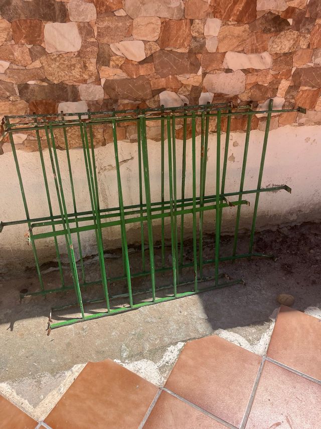 Detalles del productoRejas para ventana, ideales para reforzar la seguridad de tu hogar. Son de color verde y parecen estar en buen estado, aunque presentan algo de óxido.