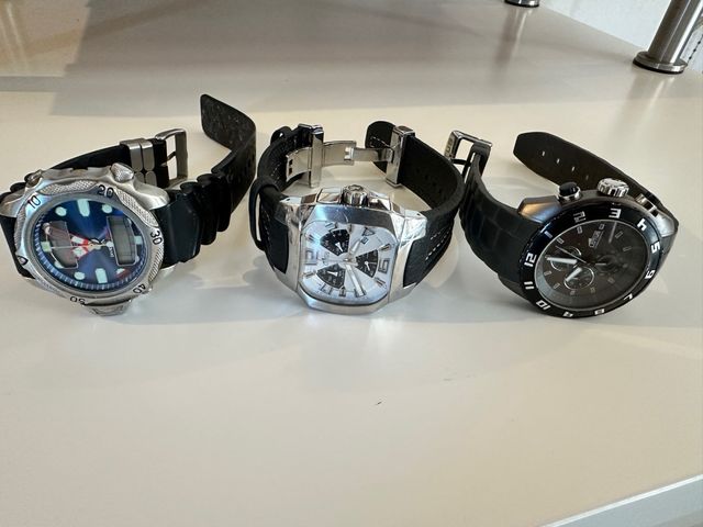 Detalles del productoLote de tres relojes de pulsera con diferentes diseños.