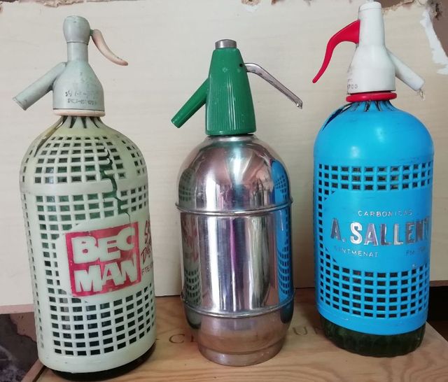 Detalles del productoLote de tres sifones de soda antiguos, perfectos para coleccionistas o decoración.