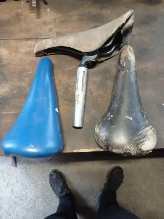 Detalles del productoConjunto de tres sillines de bicicleta antiguos, ideales para proyectos de restauración o para dar un toque retro a tu bici.
