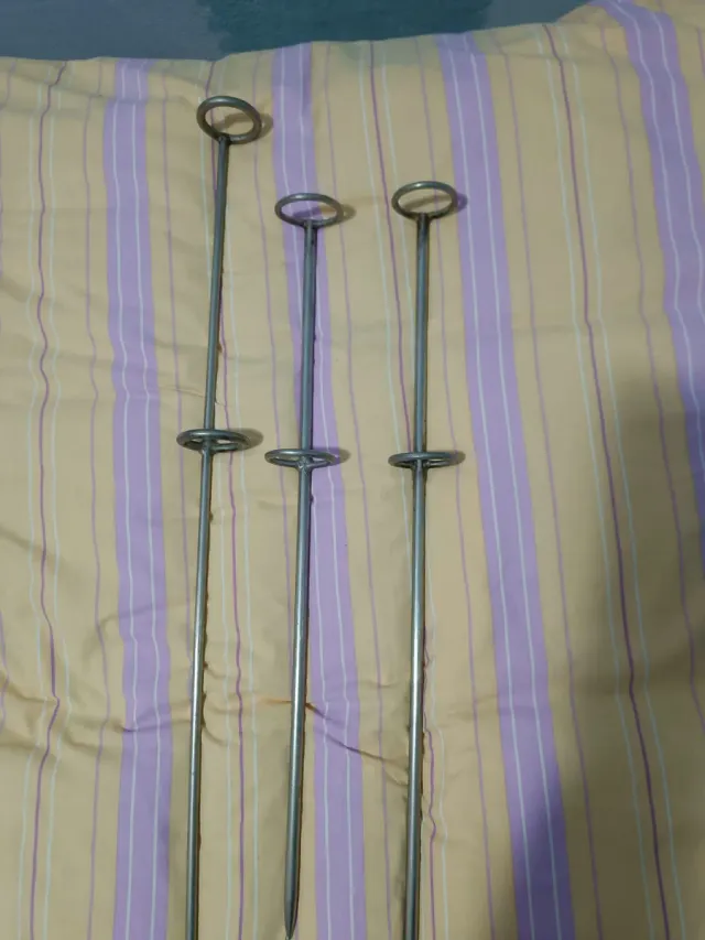 Set de tres soportes de caña de pescar de acero inoxidable medidas 73,62,58 cm en perfecto estado
