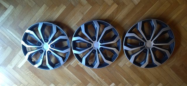 Se venden tres tapacubos de 15 pulgadas buen estado aunque algunos presenta algún arañazo.Solo venta en persona.No envío - Diseño deportivo. - Color plata y negro.