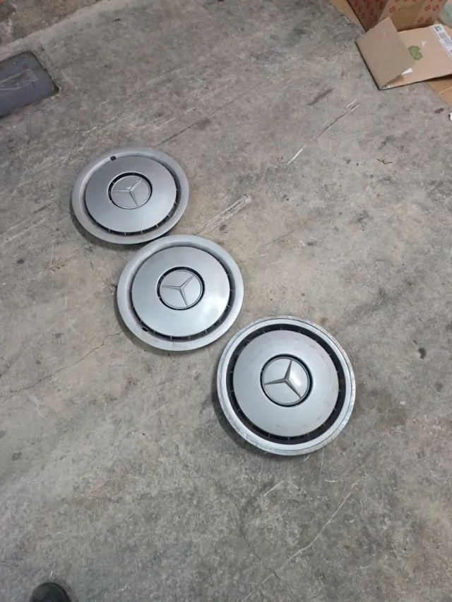 Detalles del productoSet de tres tapacubos para Mercedes. 2 de un tipo y 1 de otro. Usados y con desperfectos. 10€ los 3 o 5€ cada uno por separado.