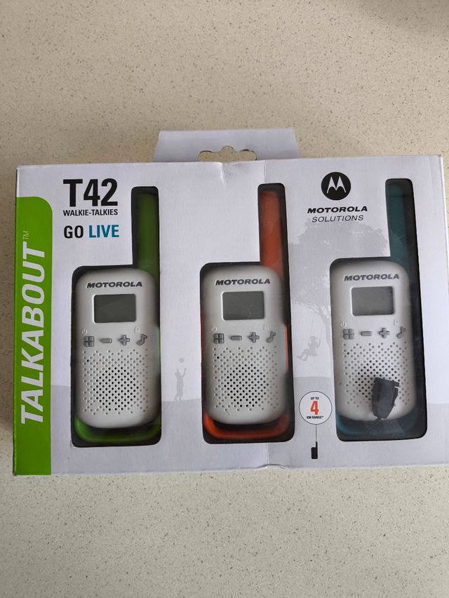 Pack de tres walkie talkies Motorola T42. - Modelo T42. - Walkie-talkies para Go Live. - Alcance de hasta 4 km.
