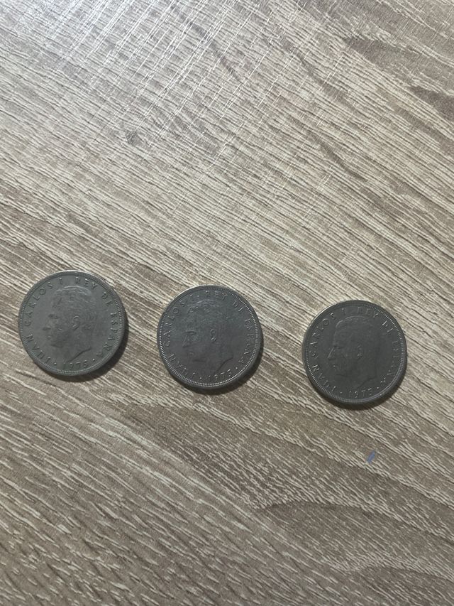 Lote de tres monedas de 5 pesetas del año 1975. - Tres unidades incluidas. - Diseño conmemorativo.