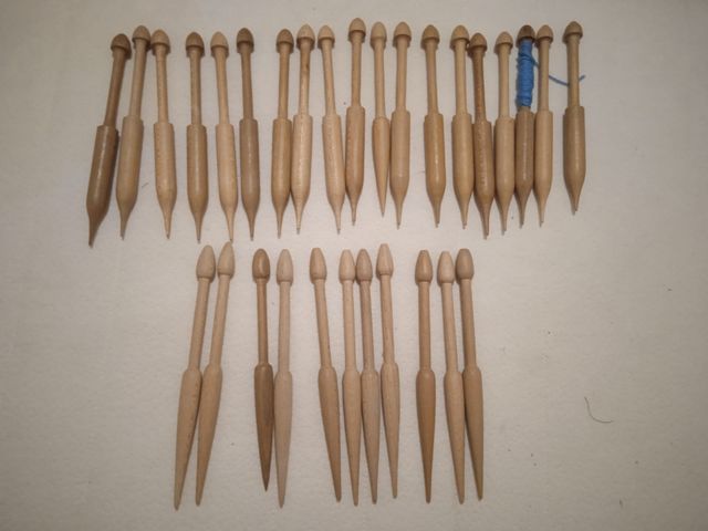 Lote de 30 canillas de tapiz antiguas, fabricadas en madera. Perfectas para coleccionistas o artesanos. - Material: Madera - Cantidad: 30 unidades