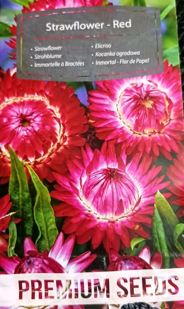 Detalles del productoSemillas de flor de papel roja, también conocida como Strawflower. Son semillas para cultivar esta hermosa planta anual que alcanza entre 60 y 100 centímetros de altura. Desarrolla tallos largos y rígidos con flores grandes y rojas. Ideal para bordes de jardín o como flor cortada, perfecta para decoraciones con flores secas. - 30 semillas - Planta anual. - Flores rojas grandes.