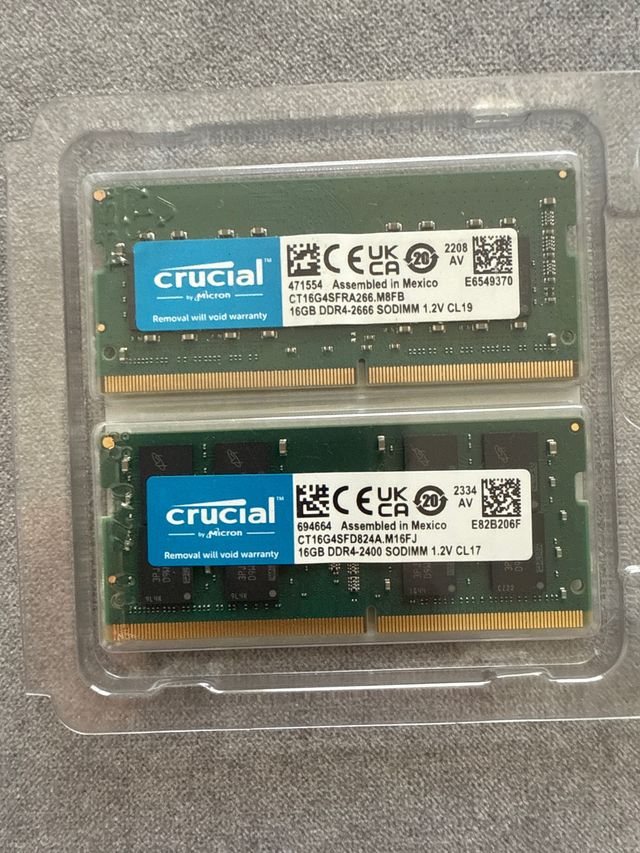 Detalles del productoSe venden dos módulos de memoria RAM Crucial DDR4 SODIMM.