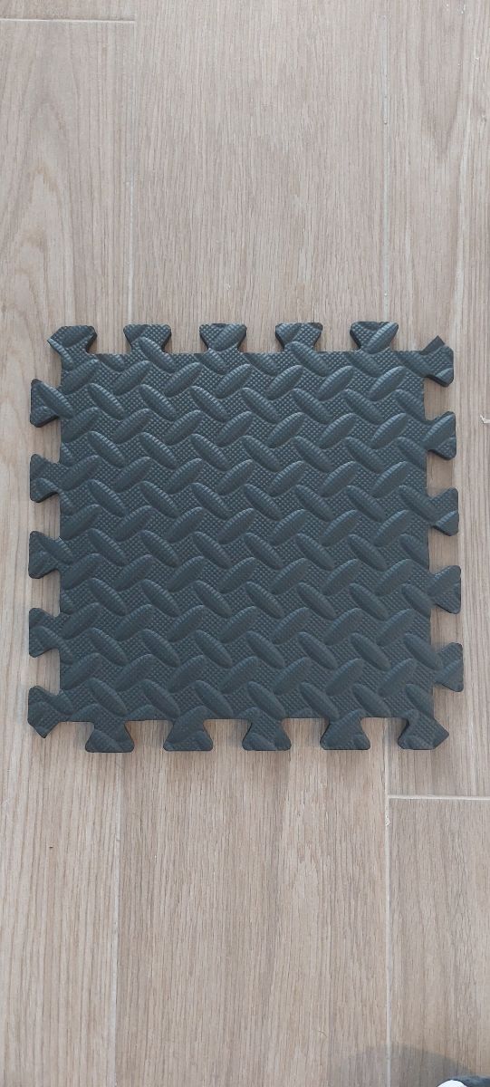 35 Piezas de suelo de goma con diseño de puzzle. Ideal para proteger superficies y amortiguar. - Color gris oscuro. - Textura antideslizante.