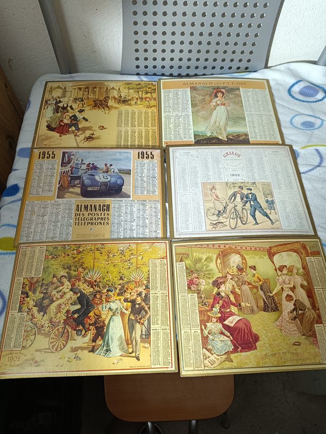 Conjunto de 39 calendarios antiguos de origen francés. - Ilustraciones vintage. - Diseños variados. - Ideal para coleccionistas.