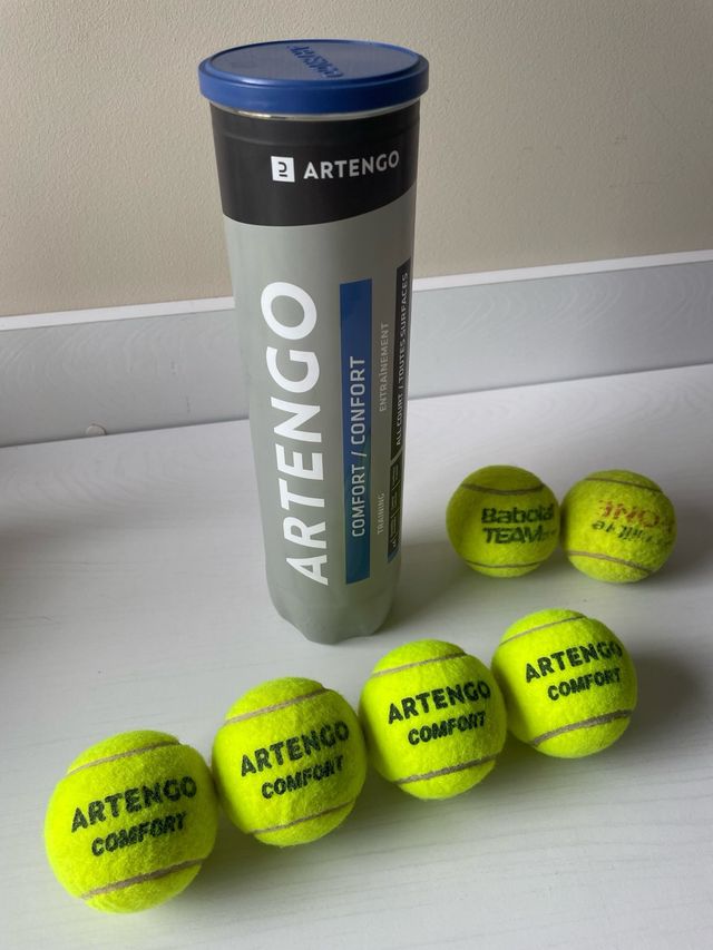 Detalles del productoPack de pelotas de tenis Artengo Comfort, ideales para entrenamiento en todo tipo de superficies. Se incluyen 4 pelotas en el tubo más 2 pelotas adicionales de regalo.