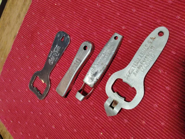 Detalles del productoLote de cuatro abrebotellas vintage, perfectos para coleccionistas o para dar un toque retro a tu cocina.