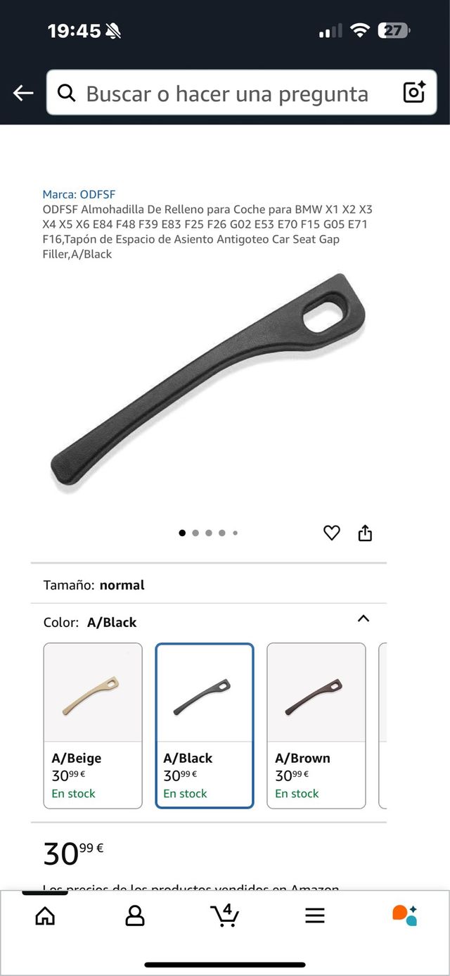 Detalles del productoVendo cuatro almohadillas para asiento de coche BMW Performance.