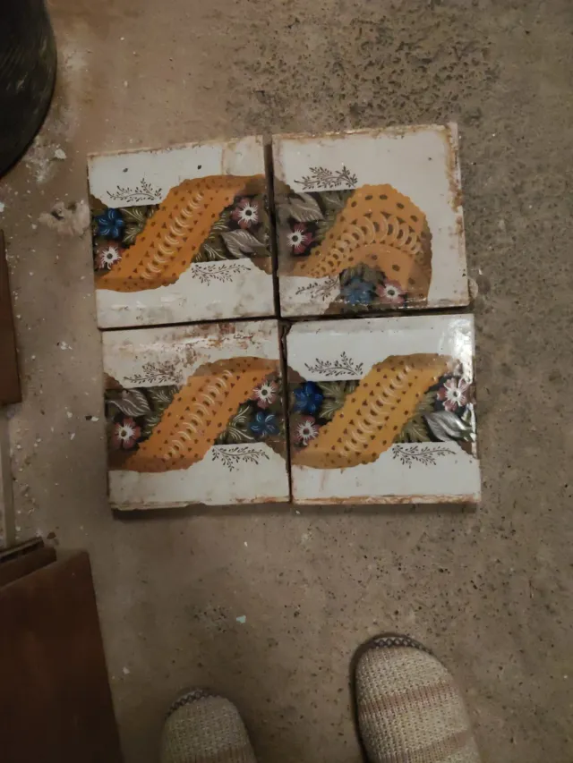 4 Azulejos Antiguos Pintados a Mano
