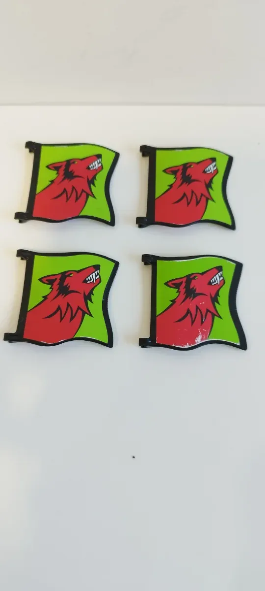 Detalles del productoLote set de 4 banderas de Playmobil con diseño de lobo rojo.