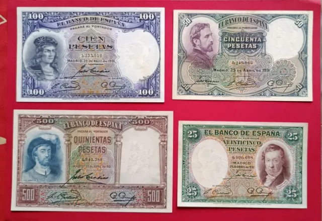 4 Billetes 1931 25, 50, 100, 500 pesetas excelente