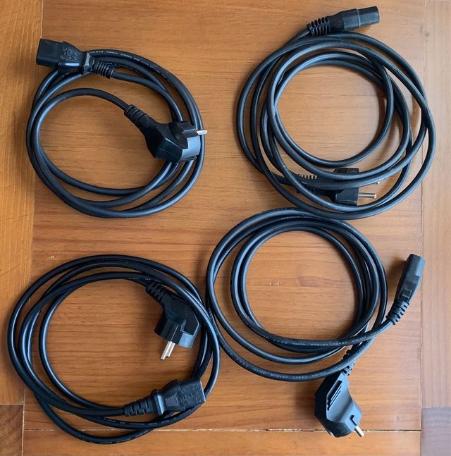 Se venden cuatro cables de alimentación de uso informatico: 1 con 2,5m y 3 de 2m de longitud.