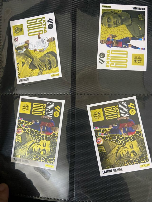 Lote de 4 cartas coleccionables de Panini supreme extra gold y extra gold - Carta de Vinícius - Carta de Raphinha - Carta de Lamine Yamal (x2)