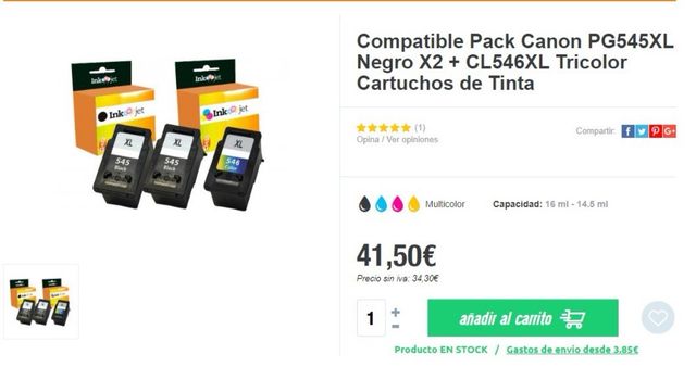 precio65,5€ tinta 2 PG-545XL y 2 CL546XL sin abrir