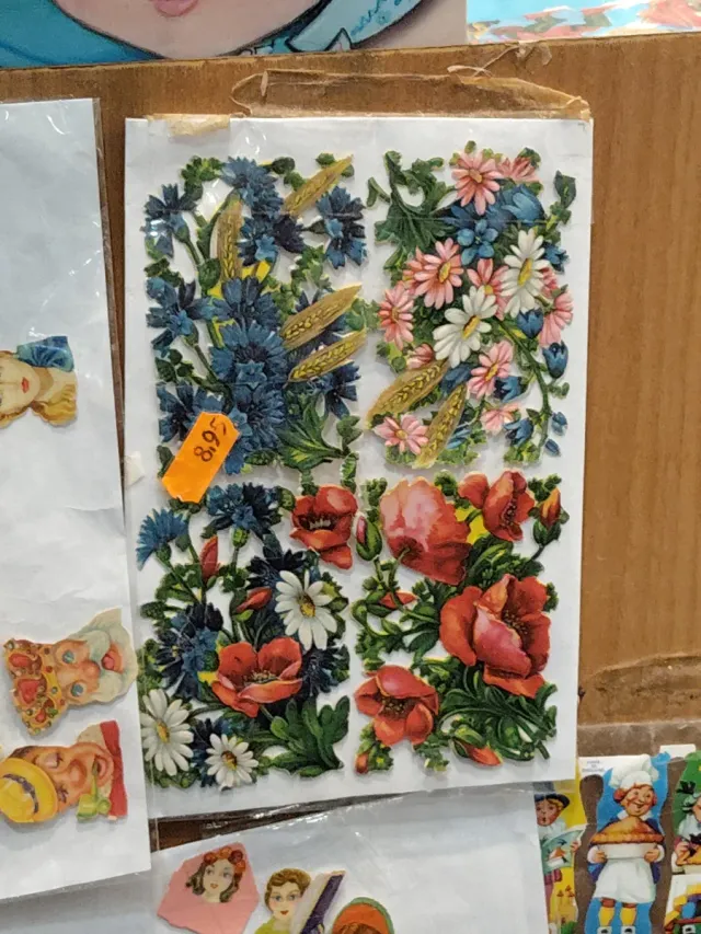 Detalles del productoConjunto de 4 cromos grandes antiguos con motivos florales.