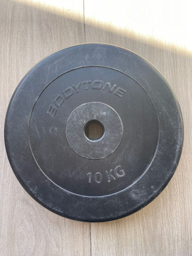 Detalles del productoDisco de pesa de la marca Bodytone con un peso de 10 kg. Ideal para complementar tu equipamiento de gimnasio en casa.