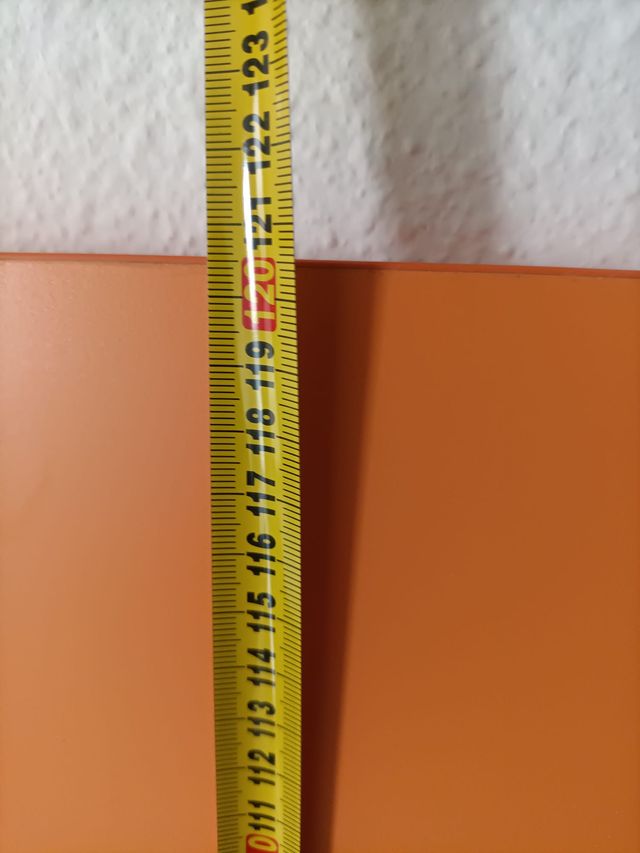 Detalles del productoConjunto de cuatro estanterías de madera chapada, cada una en un color diferente.