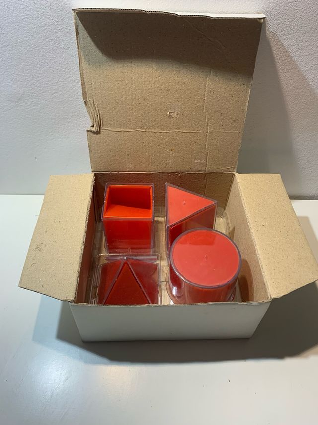 - Incluye cubo, prisma triangular, pirámide triangular y cilindro.