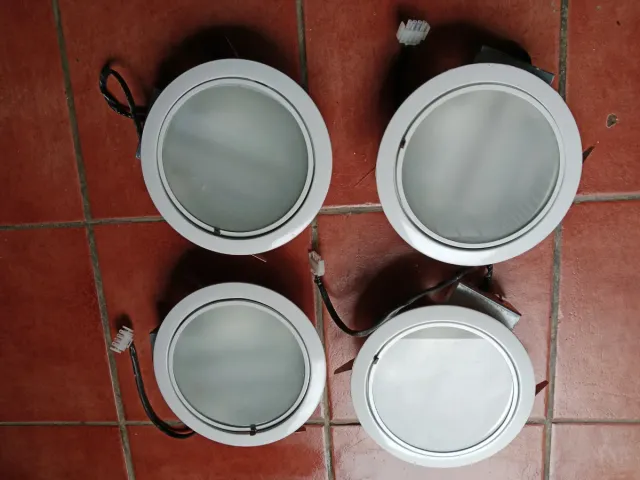 Detalles del productoLote de cuatro focos empotrables tipo downlight, listos para instalar.