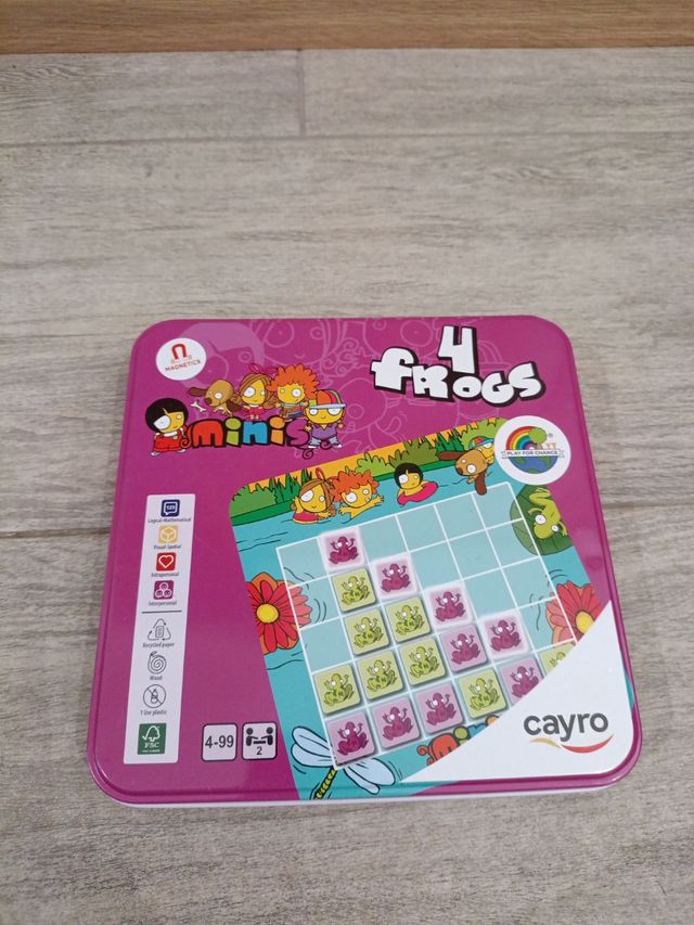 Juego de mesa 4 Frogs en raya, en perfecto estado. - Incluye tablero y fichas magnéticas. - Ideal para jugar en familia o con amigos. - Para 2 jugadores.