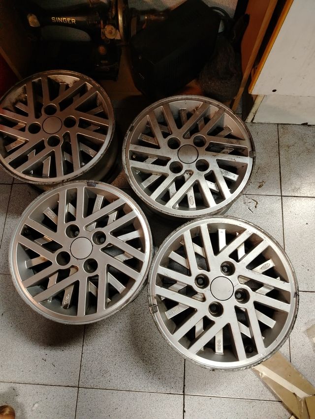 Detalles del productoJuego de cuatro llantas Ford de 14 pulgadas. Están usadas y presentan señales de desgaste, como se aprecia en las imágenes. - Son de color gris plata. - Ideales para un Ford clásico. - Se venden las cuatro juntas8