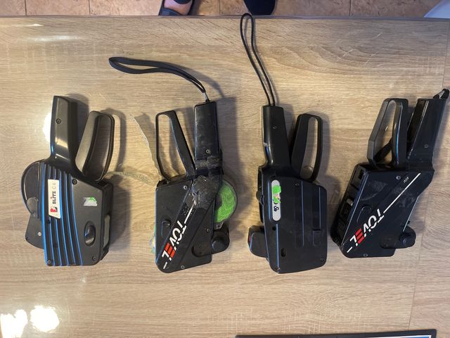 Detalles del productoSe venden cuatro máquinas de etiquetar precios, ideales para negocios o uso personal. Incluyen cinco rollos de etiquetas adicionales.