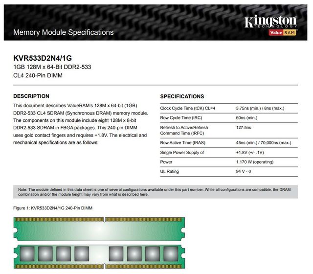 4 módulos de RAM de 1GB cada uno. Kingston KVR533D2N4/1G 1 GB DDR2 SDRAM PC2-4200 533MHz DIMM 16c 240-Pin CL4 Memoria
