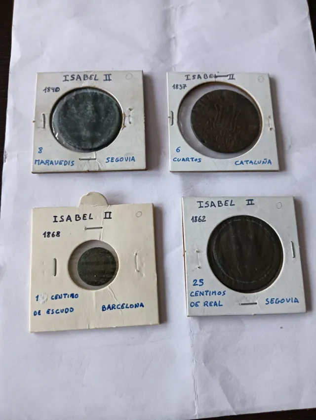 Detalles del productoConjunto de cuatro monedas de Isabel II.
