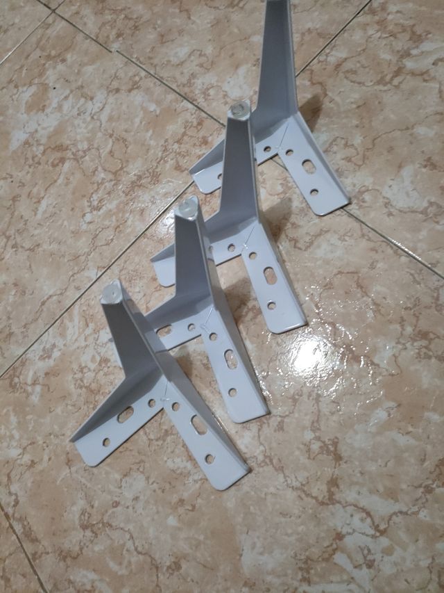 Detalles del productoset de 4 patas blancas de hierro rigido 13 cm de alto y 12 cada lado de atornillado.
