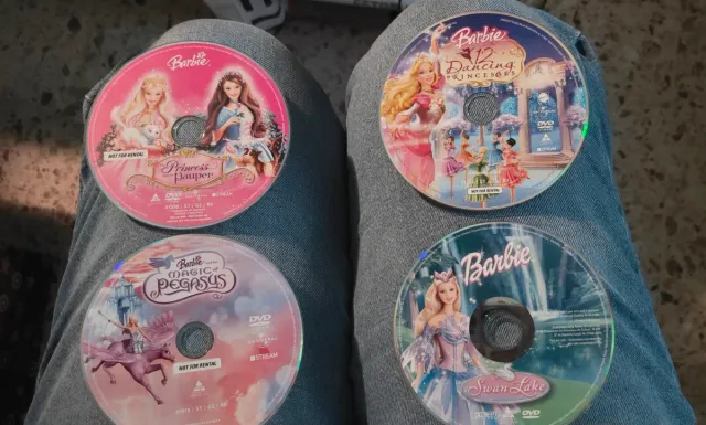 Detalles del productoLote de cuatro películas de Barbie en formato DVD.