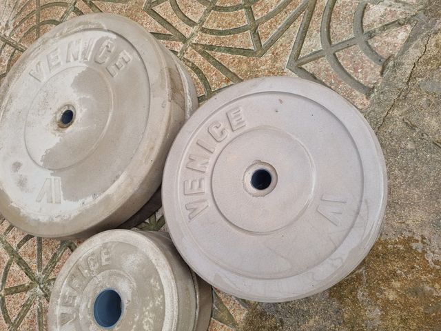 Detalles del productoPack (80€): 4x5Kg + 2x10Kg + 2x20Kg en cemento/hormigón. Set “todo terreno” para casa: ajuste fino, carga media y carga alta.
