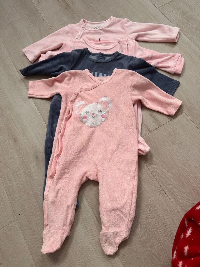 Detalles del productoConjunto de tres pijamas de bebé para niña, perfectos para mantenerla cómoda y abrigada.