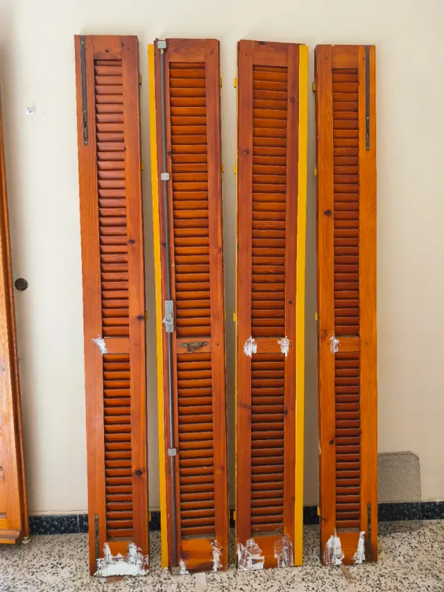 Detalles del productoConjunto de cuatro puertas de madera con diseño de palillería. Dos hojas de 2,10x0,23 y otras dos de 2,10x0,28; cubren hueco de paso de 2,21x0,97