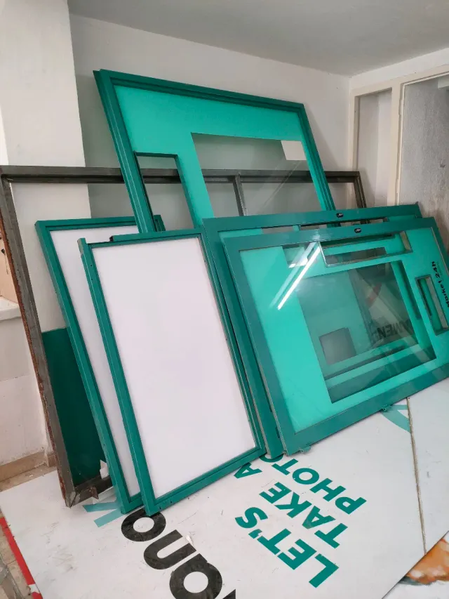 Detalles del productoSe venden cuatro puertas de hierro con cristal de seguridad.