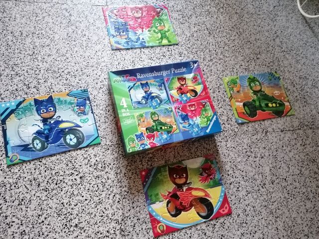 Detalles del productoCuatro puzles de PJ Masks, ideales para niñ@s de 3 años en adelante. Tanto la caja como los puzzles están en buen estado.
