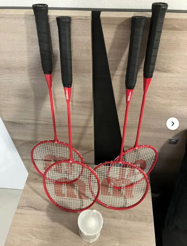 Detalles del productoSet de cuatro raquetas de bádminton Wilson en color rojo.