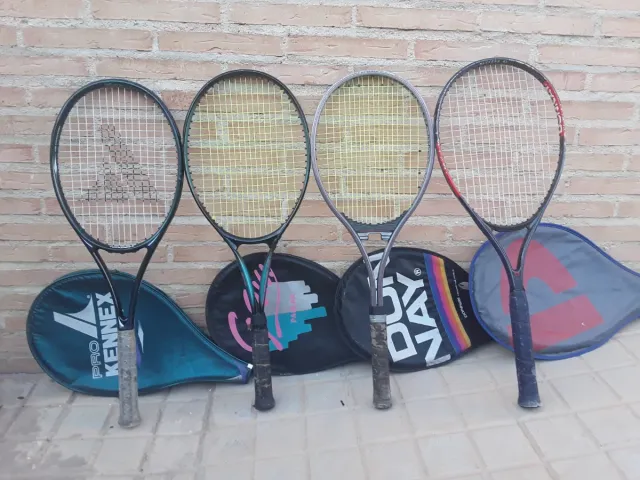Detalles del productoSe venden cuatro raquetas de tenis, cada una con su funda protectora.