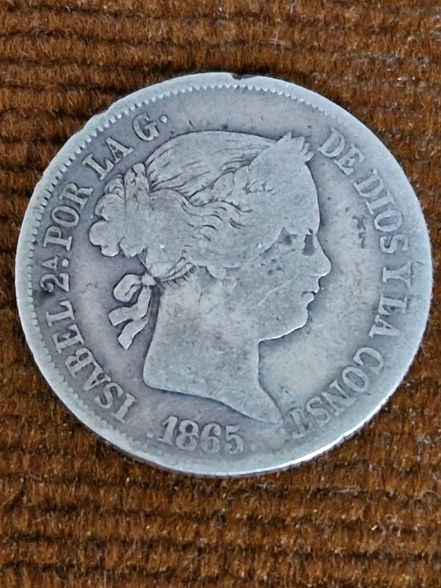Detalles del producto4 reales o 40 centimos de escudo de plata de Isabel II de 1865 de Sevilla. Peso: 4,92 gramos y diámetro: 23 mm. Entrega en mano en Alcorcón o envío a través de wallapop.