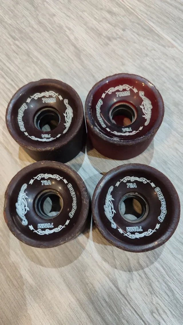 Set de cuatro ruedas para longboard. Diseñadas para un deslizamiento suave y control. - Diámetro: 70mm - Dureza: 78A - Marca: Longboarding