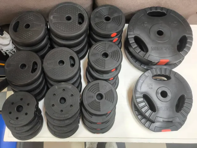 Valor aproximado: set verde 91€, set rojo 63€, discos pesados 60€.
