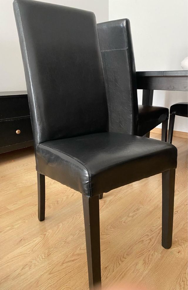 4 Sillas Comedor Piel Negra