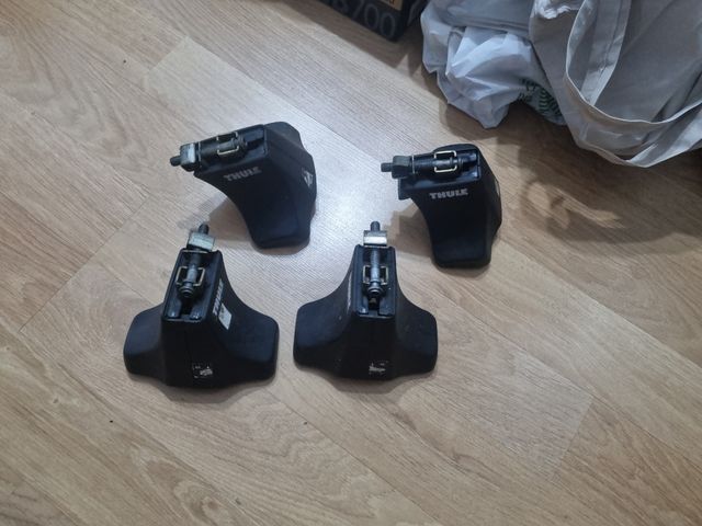 Detalles del productoSe venden cuatro soportes para portaequipajes Thule Rapid System. Están en buen estado, con algunas señales normales de uso.