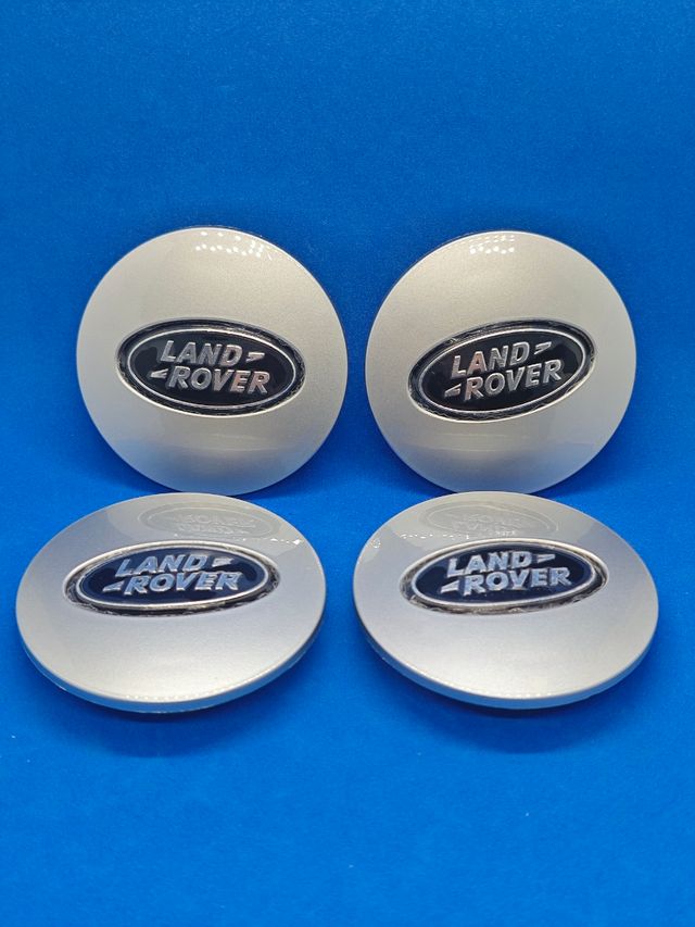 Detalles del producto4 TapaBujes(tapacubos) para todos los  modelos Land Rover ,Range Rover, LR2, LR3,LR4 con medidas 62-63 mm (medida única para los modelos Land Rover,Range Rover) en color Gris con el centro Negro.