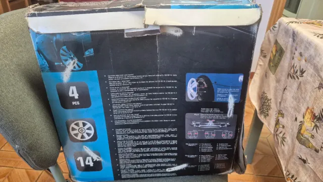 Juego de 4 tapacubos de ABS para llantas de 14 pulgadas. - Material: ABS - Tamaño: 14 pulgadas - Cantidad: 4 unidades En caja sin usar