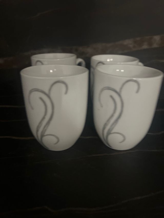 3 Tazas de Porcelana Blancas con Diseño Gris